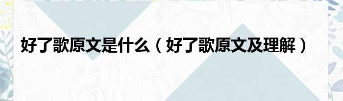 导读 大家好,今天小六子来为大家解答以下的问题,关于好了歌原文是什么,好了歌原文及理解这个很多人还不知道,现在让我们一起来看看吧!1、《好