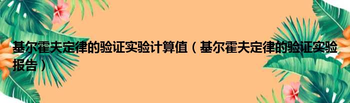 导读 大家好,今天小六子来为大家解答以下的问题,关于基尔霍夫定律的验证实验计算值,基尔霍夫定律的验证实验报告这个很多人还不知道,现在让我