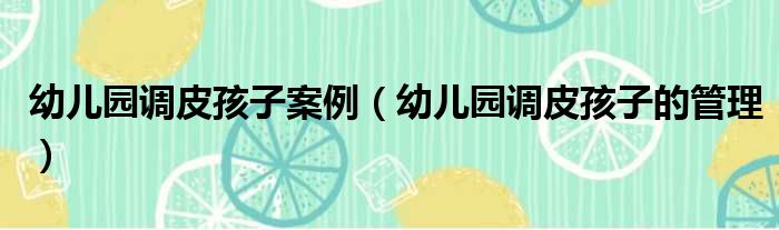 幼儿园调皮孩子案例(幼儿园调皮孩子的管理)