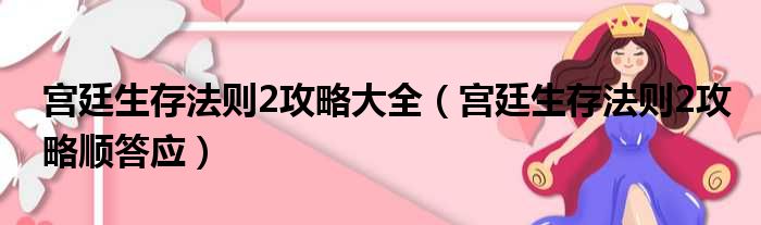 导读 大家好,今天小六子来为大家解答以下的问题,关于宫廷生存法则2攻略大全,宫廷生存法则2攻略顺答应这个很多人还不知道,现在让我们一起来看