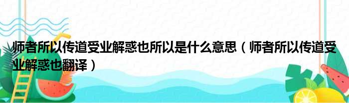 导读 大家好,今天小六子来为大家解答以下的问题,关于师者所以传道受业解惑也所以是什么意思,师者所以传道受业解惑也翻译这个很多人还不知道,
