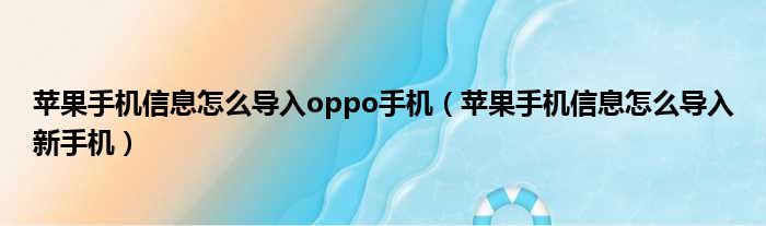 苹果手机信息怎么导入oppo手机(苹果手机信息怎么导入新手机)