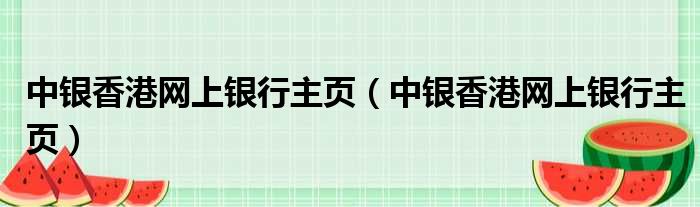 中银香港网上银行主页(中银香港网上银行主页)