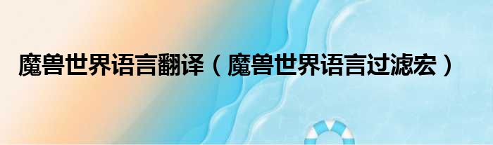 魔兽世界语言翻译(魔兽世界语言过滤宏)