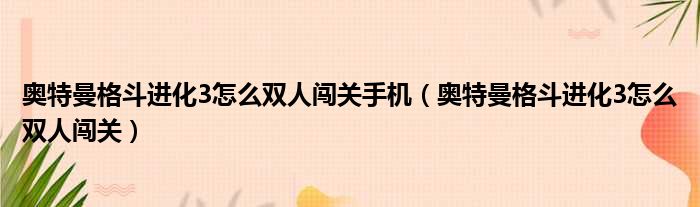 奥特曼格斗进化3怎么双人闯关手机(奥特曼格斗进化3怎么双人闯关)