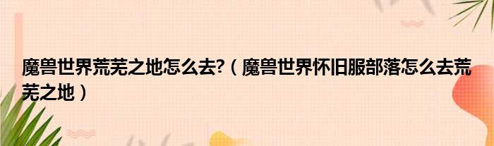魔兽世界荒芜之地怎么去?(魔兽世界怀旧服部落怎么去荒芜之地)