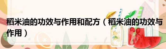 稻米油的功效与作用和配方(稻米油的功效与作用)