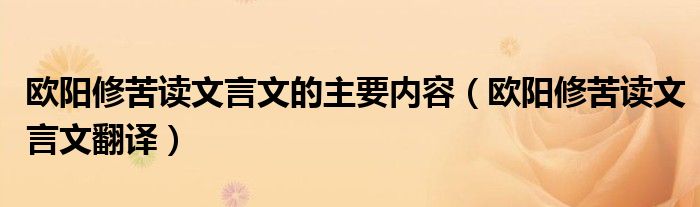 导读 大家好,今天小六子来为大家解答以下的问题,关于欧阳修苦读文言文的主要内容,欧阳修苦读文言文翻译这个很多人还不知道,现在让我们一起来