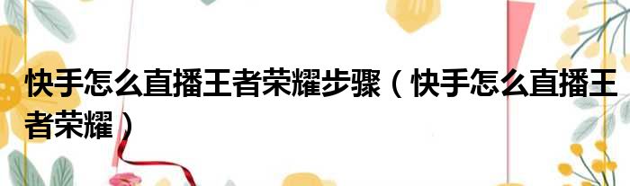 导读 大家好,今天小六子来为大家解答以下的问题,关于快手怎么直播王者荣耀步骤,快手怎么直播王者荣耀这个很多人还不知道,现在让我们一起来看