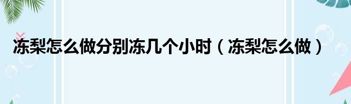 大家好,今天小六子来为大家解答以下的问题,关于冻梨怎么做分别冻几个小时,冻梨怎么做这个很多人还不知道,现在让我们一起来看看吧!