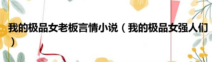 大家好,今天小六子来为大家解答以下的问题,关于我的极品女老板言情小说,我的极品女强人们这个很多人还不知道,现在让我们一起来看看吧!