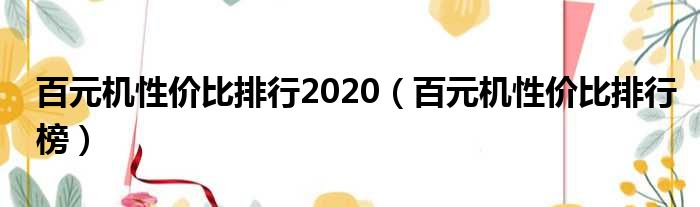 导读 大家好,今天小六子来为大家解答以下的问题,关于百元机性价比排行2020,百元机性价比排行榜这个很多人还不知道,现在让我们一起来看看吧!1