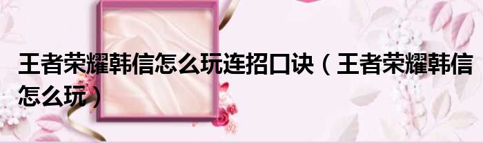 王者荣耀韩信怎么玩连招口诀(王者荣耀韩信怎么玩)