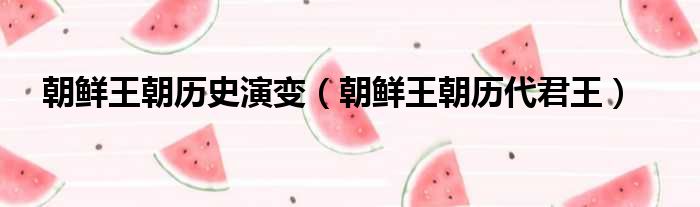 朝鲜王朝历史演变(朝鲜王朝历代君王)
