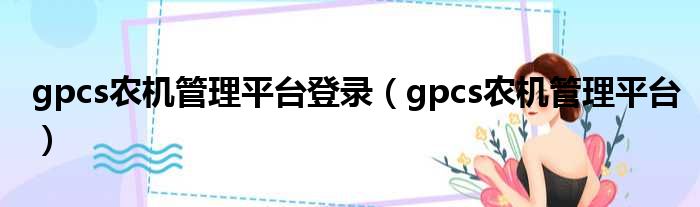 gpcs农机管理平台登录(gpcs农机管理平台)