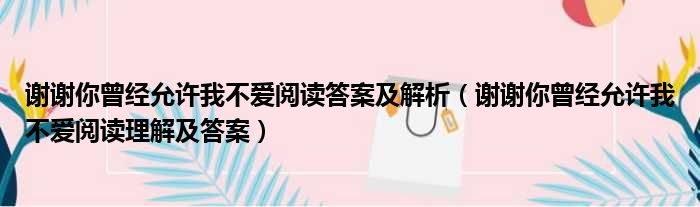 谢谢你曾经允许我不爱阅读答案及解析(谢谢你曾经允许我不爱阅读理解及答案)
