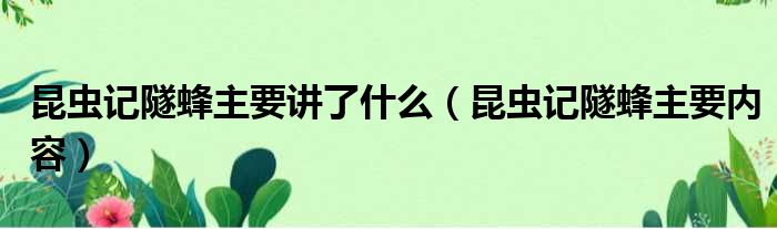 昆虫记隧蜂主要讲了什么(昆虫记隧蜂主要内容)