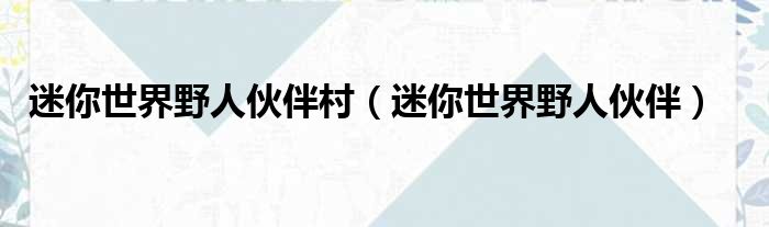迷你世界野人伙伴村(迷你世界野人伙伴)