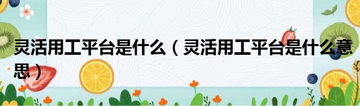 导读 大家好,今天小六子来为大家解答以下的问题,关于灵活用工平台是什么,灵活用工平台是什么意思这个很多人还不知道,现在让我们一起来看看吧