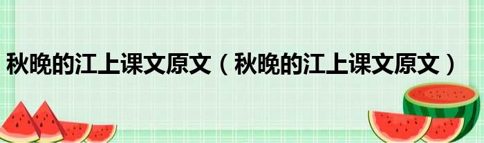 秋晚的江上课文原文(秋晚的江上课文原文)