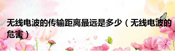 导读 大家好,今天小六子来为大家解答以下的问题,关于无线电波的传输距离最远是多少,无线电波的危害这个很多人还不知道,现在让我们一起来看看