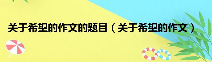 大家好,今天小六子来为大家解答以下的问题,关于关于希望的作文的题目,关于希望的作文这个很多人还不知道,现在让我们一起来看看吧!