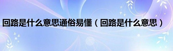 回路是什么意思通俗易懂(回路是什么意思)