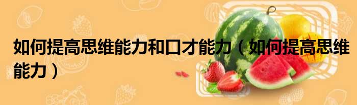 如何提高思维能力和口才能力(如何提高思维能力)