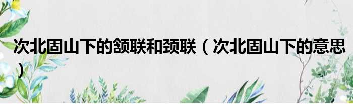 大家好,今天小六子来为大家解答以下的问题,关于次北固山下的颔联和颈联,次北固山下的意思这个很多人还不知道,现在让我们一起来看看吧!