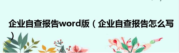 导读 大家好,今天小六子来为大家解答以下的问题,关于企业自查报告word版,企业自查报告怎么写这个很多人还不知道,现在让我们一起来看看吧!1、