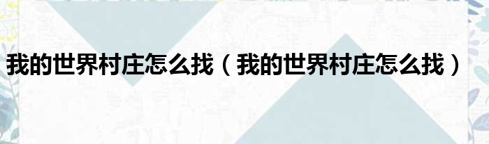 我的世界村庄怎么找(我的世界村庄怎么找)