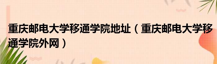 重庆邮电大学移通学院地址(重庆邮电大学移通学院外网)