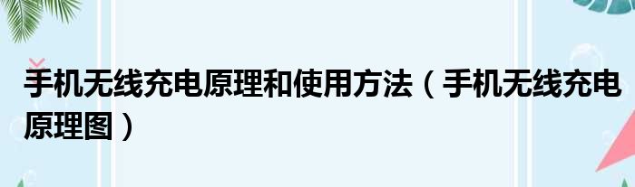 手机无线充电原理和使用方法(手机无线充电原理图)