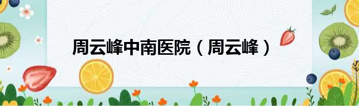 大家好,今天小六子来为大家解答以下的问题,关于周云峰中南医院,周云峰这个很多人还不知道,现在让我们一起来看看吧!