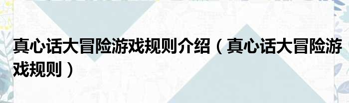 真心话大冒险游戏规则介绍(真心话大冒险游戏规则)