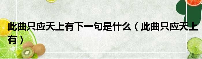 大家好,今天小六子来为大家解答以下的问题,关于此曲只应天上有下一句是什么,此曲只应天上有这个很多人还不知道,现在让我们一起来看看吧!
