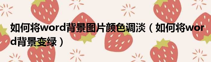 如何将word背景图片颜色调淡(如何将word背景变绿)