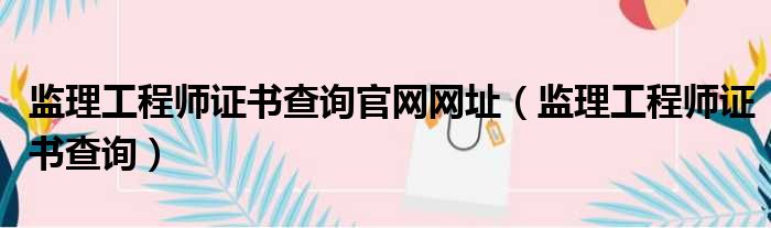 监理工程师证书查询官网网址(监理工程师证书查询)
