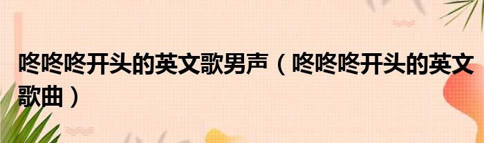 咚咚咚开头的英文歌男声(咚咚咚开头的英文歌曲)