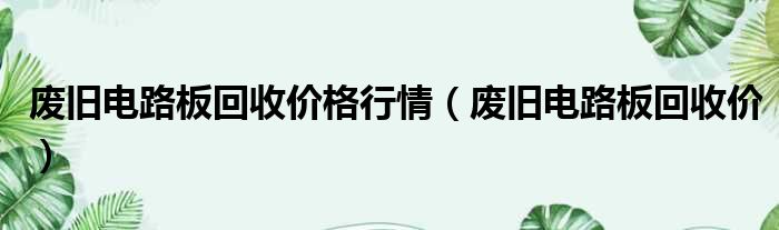 导读 大家好,今天小六子来为大家解答以下的问题,关于废旧电路板回收价格行情,废旧电路板回收价这个很多人还不知道,现在让我们一起来看看吧!1