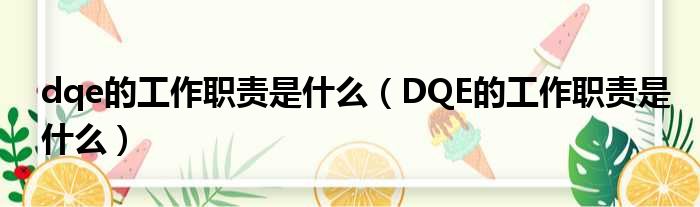 dqe的工作职责是什么(DQE的工作职责是什么)