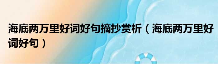 海底两万里好词好句摘抄赏析(海底两万里好词好句)