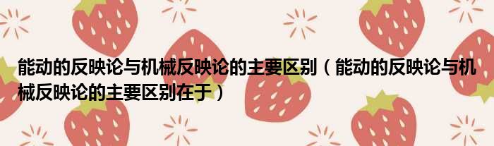 能动的反映论与机械反映论的主要区别(能动的反映论与机械反映论的主要区别在于)
