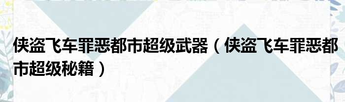 侠盗飞车罪恶都市超级武器(侠盗飞车罪恶都市超级秘籍)