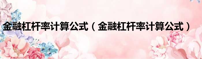 金融杠杆率计算公式(金融杠杆率计算公式)