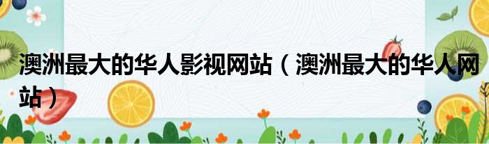 澳洲最大的华人影视网站(澳洲最大的华人网站)