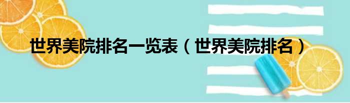 大家好,今天小六子来为大家解答以下的问题,关于世界美院排名一览表,世界美院排名这个很多人还不知道,现在让我们一起来看看吧!