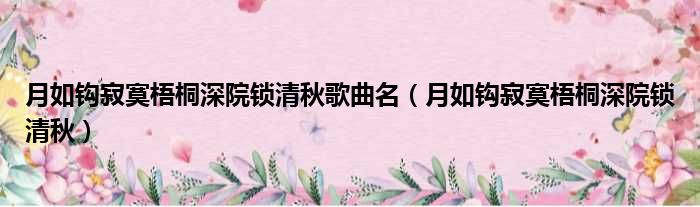 月如钩寂寞梧桐深院锁清秋歌曲名(月如钩寂寞梧桐深院锁清秋)