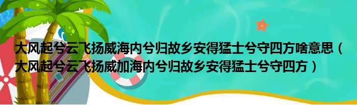 大风起兮云飞扬威海内兮归故乡安得猛士兮守四方啥意思(大风起兮云飞扬威加海内兮归故乡安得猛士兮守四方)