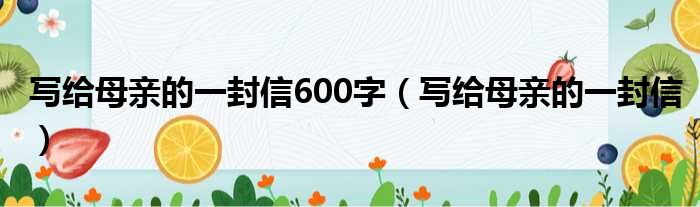 导读 大家好,今天小六子来为大家解答以下的问题,关于写给母亲的一封信600字,写给母亲的一封信这个很多人还不知道,现在让我们一起来看看吧!1